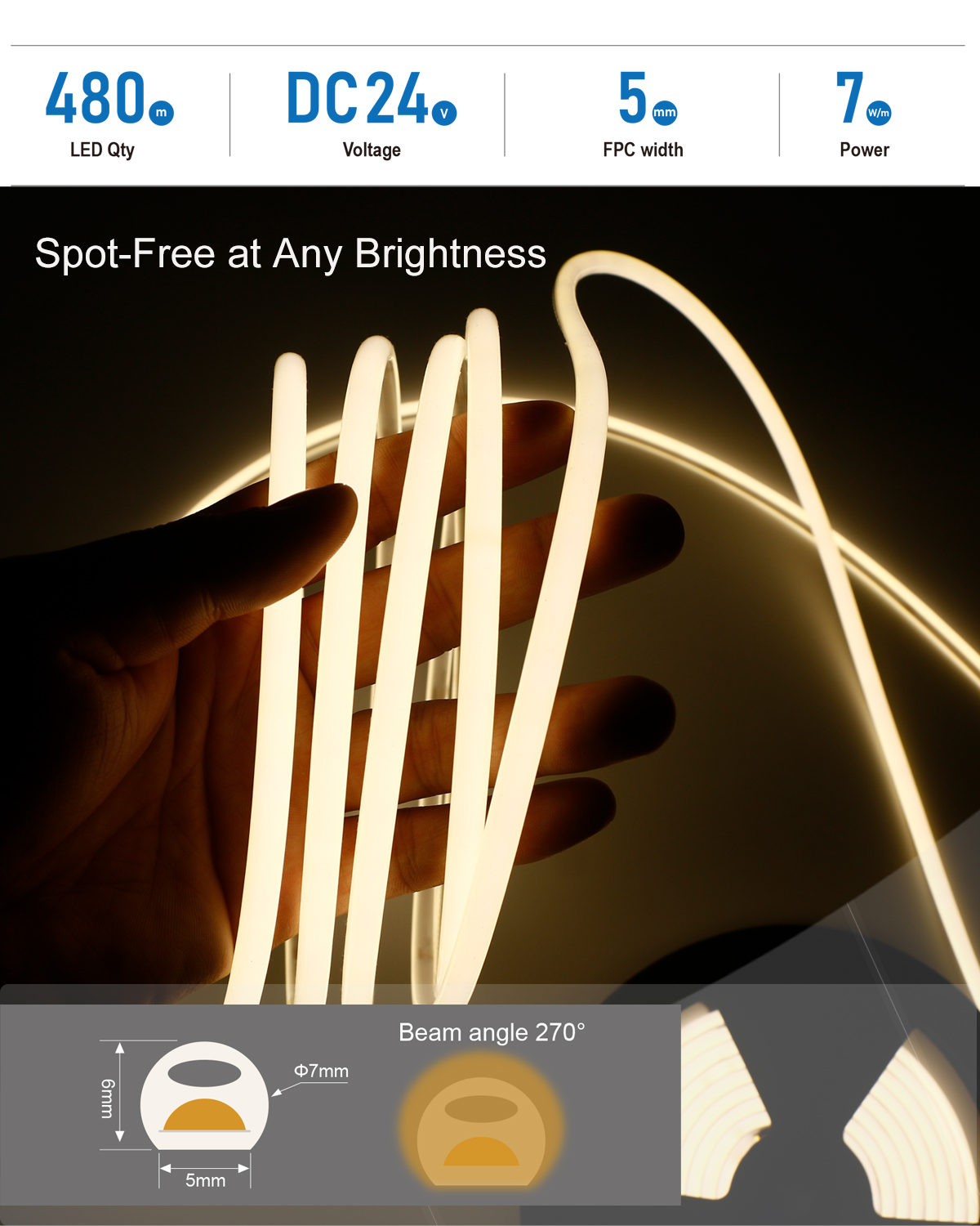 ✅ Zero Hotspot Illumination: Advanced COB LED strip lights packaging technology ensures <5% luminance deviation across the entire strip.